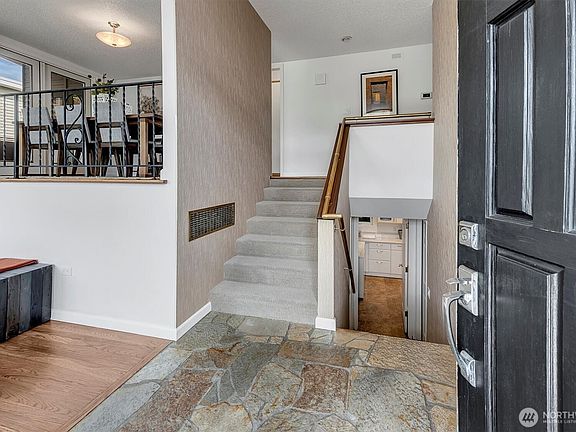 First time on the market, this classic Somerset home has western views of Lake Washington, the Olympic Mountains, Seattle skyline, and unforgettable sunsets. Elevated from the street, this refreshed gem features newly refinished hardwood floors, fresh carpet, and interior paint. Soaring ceilings and walls of glass in the living room showcase the view, anchored by a striking mid-century fireplace. Sliders off the kitchen open to a private deck and a mature landscaped backyard. Three bedrooms on the upper floor, including a primary suite. The lower level includes expansive bonus spaces (4th bedroom?) and offers flexibility for work, play, or guests. Coveted Bellevue schools, a quiet neighborhood, and unbeatable location complete the package!