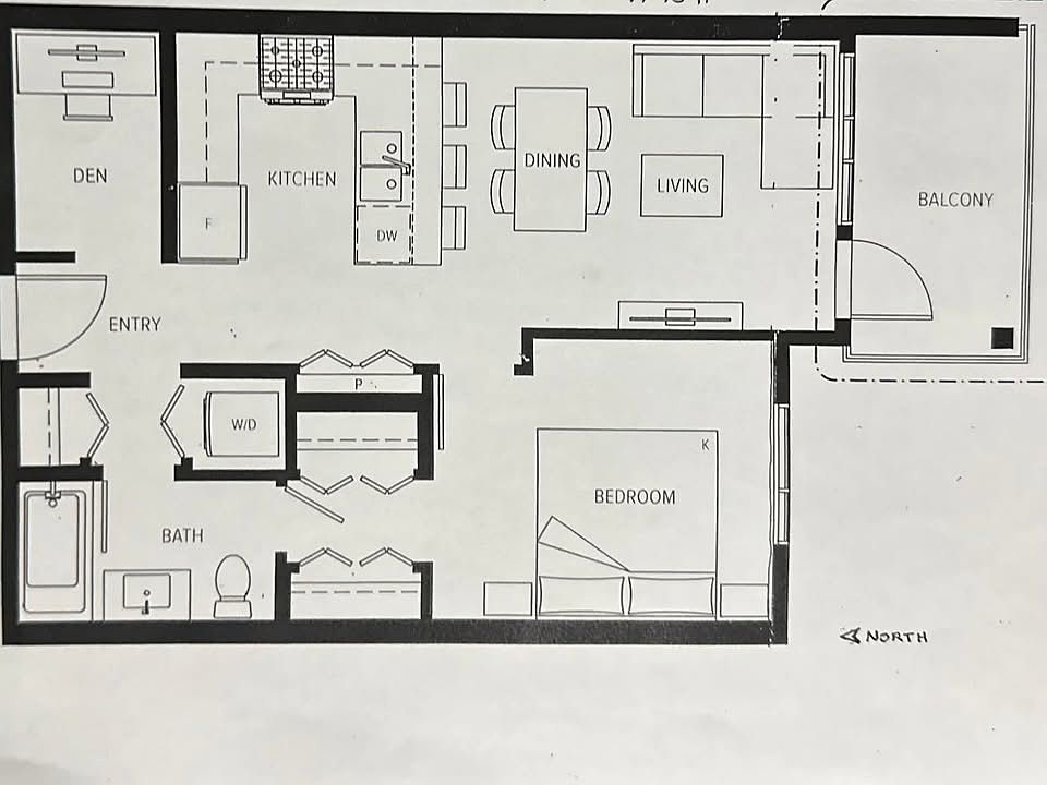 1 Bed + Den / 1 Bath / 617 Sq ft