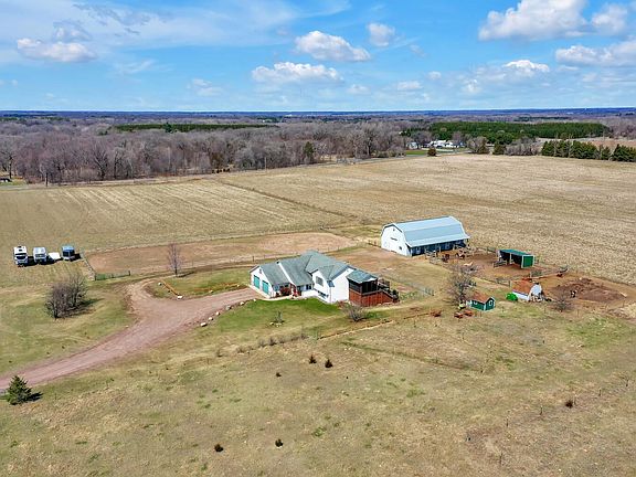 This property checks all the boxes! Close to everything but far enough to enjoy the privacy! Never before on the market! This is a perfect walk-in/move-in situation for horses and some farm animals on 20 acres or if you are simply looking to find quiet solitude! Plenty of room to roam! Lovely 4 BR-3BA with great outdoor space-Soil is non-muddy and super for horseback riding- Main Level screened porch and maintenance-free deck/railings off the dining area-LL patio-Firepit area - Large 64 x 36 Barn with a-Open 24 x 12 lean-to building for horses - heated automatic waterers-storage shed- adorable playhouse for the kiddos or could be gardening shed! Open floor plan concept-spacious LL hall area- large entryway-master bedroom features huge walk-in closet and private master bath - TV and mount stay! Lower level walkout with the family room - 2 more bedrooms and 3/4 bath - laundry and storage. In-floor heat is installed in the basement and garage floors but not hooked up. Nature abounds!