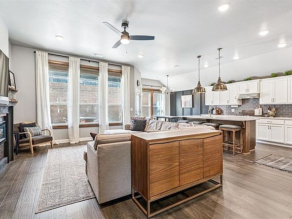 Great new price and now VA assumable at 3.9% so bring your highest expectations and you will not be disappointed!! This beautifully maintained and updated home features an outdoor wood-burning fireplace on the covered patio and includes a private study and large Primary suite. The kitchen has quartz countertops with stylish backsplash and fixtures. Solid surface flooring in all common areas and open concept living and kitchen area make entertaining a breeze! Underground shelter, motorized blinds, and eave lights round out this stunning home as well as an easy upkeep backyard with stone wall that will never need to be replaced! With a beautiful wooded walking trail, pond, and a peaceful landscape. Timber Ridge is a true retreat from the city with convenient access to Tinker Air Force Base and downtown Oklahoma City.