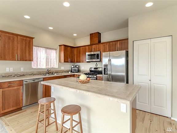 Welcome to this beautifully maintained 4-bedroom, 2.75-bath home, situated in Auburn's desirable Monterey Park community. Welcoming you with a beautiful view of Mt Rainier, this open floor plan features a 20 ft ceiling entry, AC, a large main floor bedroom & full bathroom, a spacious living room w/cozy fireplace, and a gourmet kitchen complete with beautiful hardwoods, a large island, tile countertops & stainless steel appliances. The upstairs loft serves as a perfect office, study, or media room. The master suite features a vaulted ceiling, a 5-piece master bath with a walk-in shower, a large soaking tub & spacious walk-in closet. The two additional bedrooms share a Jack-and-Jill-style bathroom, and there is also an upstairs laundry room. Convenient to local amenities, shopping, and easy access to freeways