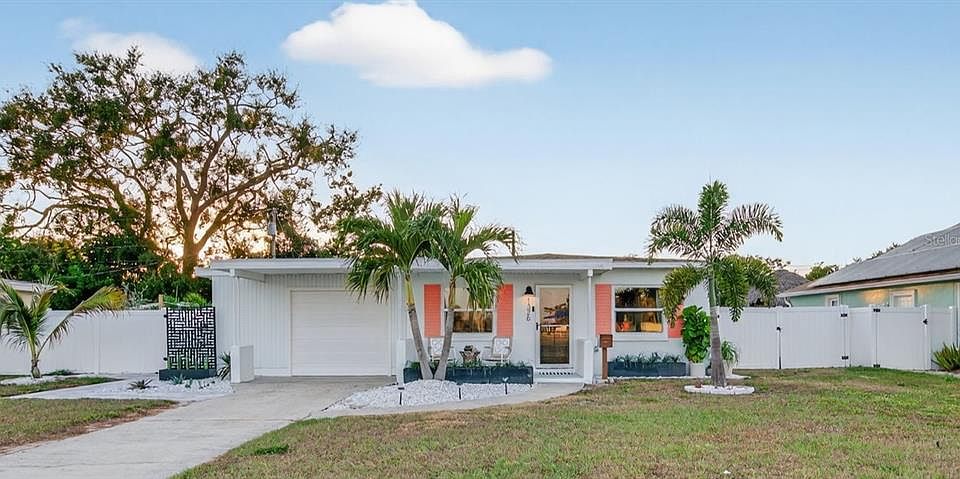 Awe-inspiring new listing in the Jungle Country Club neighborhood of St. Pete! This impeccably upgraded mid-century residence offers a refined blend of modern luxury and timeless design. Behind its newly reclaimed MCM wood front door, the home opens to a tastefully reimagined interior where clean architecture, premium materials, and thoughtfully curated finishes define every space. The modern renovated kitchen serves as a true centerpiece—an 8’ quartz waterfall island, solid wood cabinets in white and walnut, glossy porcelain backsplash, and NEW Samsung Bespoke Smart appliances create a sleek, gallery-like aesthetic. Engineered wood plank flooring throughout (no carpet), NEW Pella hurricane rated windows and patio slider (2024), designer lighting, and a fully renovated bath elevate the home’s understated sophistication. Outdoors, the property transforms into a private resort: a 12’ x 25’ inground pool (2022) with Baja shelf and color-changing lighting, UV shade sails, an expanded paver terrace, a covered pergola with fans, and a custom outdoor kitchen make entertaining easy while lush tropical landscaping, a framed fire pit lounge, and a hurricane-rated 96 sq.ft. studio-quality shed (2024) add both beauty and utility. With a long list of even more fantastic renovations & enhancements done in 2024–2025 — Culligan water softener, mini-split A/C unit in converted garage den, privacy fencing, interior & exterior paint, landscaping in front and back yards, security and Smart home upgrades (the list goes on!) — this home delivers a level of finish and comfort rarely found at this price point. Could this home get any better? It can! Centrally located between bustling downtown and the award-winning beaches of the gulf coast, across the street from beautiful 22-acre Azaela Park, and a few blocks from the Pinellas Trail, you'll never want for things to do in this neighborhood. You'll also have peace of mind living in a non flood zone home that is solid block construction and remained damage-free from last year's hurricanes. It's just waiting to be yours.