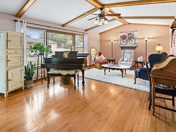 Welcome to this spacious ranch home offering over 2,300 total sq. ft. of finished living space on both levels. Featuring 3+ bedrooms on the main floor, including a primary suite with a full bathroom and dual closets, this property blends comfort and function. The living room impresses with vaulted wood beam ceilings, while the oversized kitchen boasts abundant cabinets and countertops for everyday living and entertaining. Step through the kitchen's slider door onto a large deck with views of your private, wooded backyard,perfect for gardening, relaxing or hosting gatherings.The walk-out lower level is bright with daylight windows and adds versatility with a bonus full kitchen, family room, a 4th non-conforming bedroom, and a full bath. A large laundry and storage area keeps things organized. Hobbyists and gardeners will love the expansive 588 sq. ft. heated tuck-under garage, ideal for a shop or gardening shed. Many recent updates enhance this well-maintained home, making it move-in ready and designed for easy living.