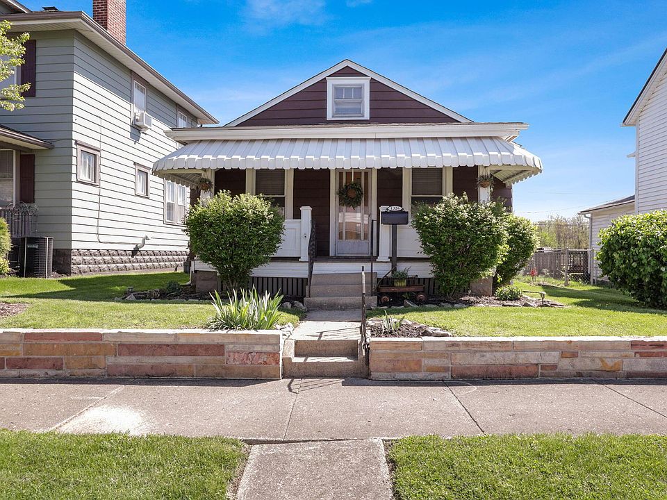 Welcome to this adorable bungalow, perfect for those seeking low-maintenance living without sacrificing space for hobbies. Don't be fooled by the square footage—this home packs a punch with its full basement that includes a bonus kitchen area, perfect for home canners or anyone in need of a creative workspace. The property features two one-car garages, linked by a carport which doubles as additional parking or the ideal spot for outdoor entertainment. The yard is beautifully landscaped, creating a serene environment, and the quaint front porch provides a shaded retreat to relax on warm summer afternoons. Recent upgrades since 2021 include a new roof and gutters with gutter guards, new furnace and A/C, and tankless water heater. Showings start 4/25/24.