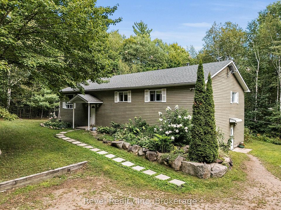 Set on 50 acres and backing onto crown land, this spacious raised bungalow offers over 3,200 sq. ft. of finished living space. Freshly painted and designed with an inviting open-concept layout, the main floor boasts a bright and airy living, dining, and kitchen area with a massive island perfect for family gatherings and entertaining. Three bedrooms and two full bathrooms complete this level, which includes a private primary suite with 4-piece ensuite. Both bathrooms on the main level have in-floor heating. The walk-out basement with separate entrance opens the door to in-law suite potential. Here you'll find an additional bedroom and an office/den, a cozy family room with a wood stove, a large wet bar and games area, and a convenient 2-piece bathroom, an ideal space for extended family or guests. For those seeking a hobby farm lifestyle, this property is ready to deliver with a 24' x 36' pole barn with water & hydro, built to allow expansion to 36' X 36' if desired. Dedicated chicken coop for fresh daily eggs and a 20' x 30' detached garage with a 8' X 20' workshop in the back for all your projects and storage needs. There are also 3 footings poured at the back of the house for a future Muskoka room. The land itself is a treasure, featuring scenic trails that connect directly to crown land and the snowmobile trail, an outdoor enthusiasts dream. Just minutes to the Baysville marina and Lake of Bays boat launch, where cottage-country adventures begin. This is more than a home, its a lifestyle. Whether your vision is a self-sufficient homestead, hobby farm, or private family retreat, this property blends space, privacy, and convenience in the heart of Muskoka. With close proximity to Baysville, you'll also enjoy quaint shops, a bakery, restaurants, LCBO, library, the Lake of Bays Brewery, a playground with a new splashpad and more! Shingles replaced in 2020. Most window coverings custom made.