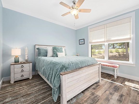 This LIKE NEW, ONE LEVEL, detail-oriented farm house, sits on a over 1 acre of beautiful, flat land with stunning, upgraded landscaping, offering a wooded area for privacy. It is minutes away from Anderson, Pendleton and Clemson. The professionally painted home features an open floor plan with beautiful low maintenance LVP flooring throughout the home with ceramic being in the bathrooms and laundry room. A doggie shower is located in the laundry room. The gorgeous gourmet kitchen features a gas cooktop with retractable downdraft ventilation, stainless steel appliances, ceramic backsplash, under counter lighting, a soaring ceiling with open beam accents and breakfast bar. Open to the kitchen is the dining area with it's stunning SHIPLAP CEILING and an expansive great room with soaring ceilings! The FLEX ROOM is currently being used as an office. It offers a closet for extra storage and double barn doors stained to match the kitchen ceiling beams. Just wow!! Outside, the deck runs the entire length of the house and overlooks the large back yard and wooded area behind it. Step onto the deck from the great room to enjoy your morning coffee, your backyard view or hop onto the pathway and slate sidewalk to the double-doored storage building, currently used as a She Shed, with electricity, that has also been stained to match the deck, the interior accents and exterior window shutters. A 14x20 deck, with bench seating, is attached to the side of the storage building for outdoor entertaining. Back inside, the master suite boasts a large bedroom with tray ceiling, private access to the screened porch portion of the deck and a master bath with ceramic floor, granite counter top, walk-in closet, and glass/ceramic walk-in shower. The additional bedrooms and additional bathroom, are separated from the master, for privacy, in this split floor plan. All this on over an acre of land and minutes from I85, Anderson, Pendleton, and Clemson with a great option to use this property as an Airbnb investment during Clemson football season, as well as for the fishing tournaments at Green Pond Landing LOCATION. LOCATION. LOCATION. (All kitchen appliances including the washer and dryer will convey. The lanterns on the brick columns, at driveway entrance, are solar).