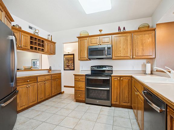 This exceptional 55+ condo is a true standout, offering quality throughout and an impressive array of features. The home is equipped with extensive amenities, including stunning views, indoor heated parking, fire sprinklers, an exercise room, secured entrance, and beautifully landscaped, irrigated grounds. The living room boasts a bank of windows, flooding the kitchen and living room with natural light. The kitchen is a chef's dream with hard surface countertops, quality cabinetry, stainless steel appliances, and a built-in buffet. Adjacent to the living room is a spacious family room, which offers access to a private balcony. The large primary bedroom is a true retreat, featuring a double door entryway and a generous walk-in closet. The primary en-suite bath is equipped with dual sinks, a tub, separate shower, and built-in cabinets. The condo also includes an additional bedroom, a full bathroom, and a convenient laundry room next to the family room. Ownership comes with priority access to Friendship Village.