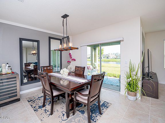 Immaculate 2023 Cali Model in Halifax Plantation. Smart home tech lets you control the video doorbell, garage, lights, locks and thermostat from one app. Nine foot ceilings and an open floor plan welcome you. Four bedrooms offer flexible space for an office, den or guest suite. The kitchen features a large granite island, stainless appliances and a custom made, shelved walk in pantry. Upgraded lighting and a new living room fan adds style. The primary suite has a walk in shower, dual vanity and a large custom shelved closet. Three bedrooms, a laundry room and a two car garage add convenience. Tile floors anchor the main living areas with carpet in bedrooms. Relax on the covered lanai with a peaceful pond view. Front and back sprinklers. Community amenities include an 18 hole golf course with pro shop, clubhouse with two restaurants, pool, tennis courts and fitness center. Minutes to the scenic loop, Tomoka State Park, the beach and I95. Don't miss your chance to make it yours!