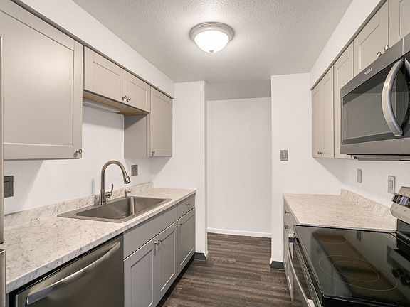 - Exterior features: Designer Tile Backsplash*, Keyless Home Entry, Newly Renovated Apartment Homes*, Quartz Countertops*, Stainless Steel Appliances*, Undermount Sinks with Gooseneck Faucets*, Wood-Style Flooring*
