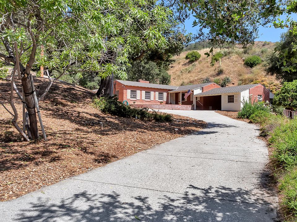 Tucked up into your own canyon in the highly desirable Verdugo Woodlands sits this single family residence with a brick facade on a large 28,050 sq ft (approx.) lot. This 3 bedroom home is in very good condition on picturesque grounds at the end of a long driveway with a beautiful resort-style backyard. The interior offers a single level layout with a spacious living, family, and dining room with large windows that overlook the park-like backyard with rolling hills and mature landscaping. Separate from the main house and adjacent to the carport space, there is a separate 1-bedroom 1-bathroom structure with a storage room and laundry room with sink. Newer roof, maintained very well over the years, central air, wood floors, built-ins, 3 fireplaces, and a great flexible floor plan awaits you. Feel far away from everything, but you will also be close to Oakmont Country Club, Glendale Community College, and only minutes away from shopping, dining, 3 freeways, and entertainment destinations.