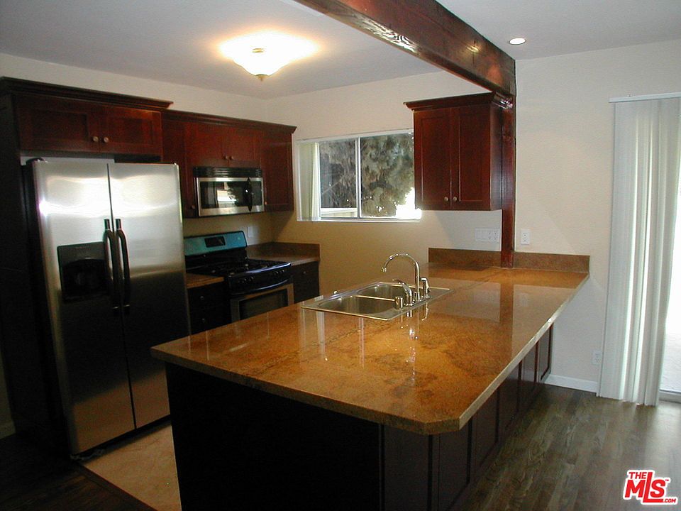 Million dollar Stainless/granite kitchen with Hardwood floors and private patio in quiet 6-unit building. 2-car carport parking. Incredible remodeling of this no expense spared unit. Vaulted ceilings, large granite slab counters, new cherry wood cabinets, stainless appliances and refinished hardwoodfloors. Spacious counter/bar area and separate dining area, remodeled bath with tiled tub/shower. Best central location 5 minutes to Beverly Hills,Hancock Park and The Grove. Easy access to freeways and Downtown. Best priced one bedroom unit in Miracle Mile!