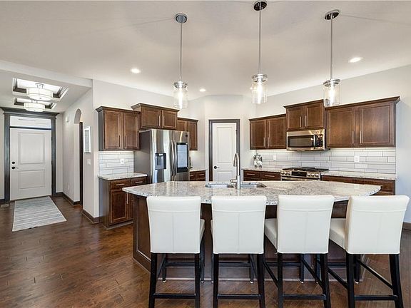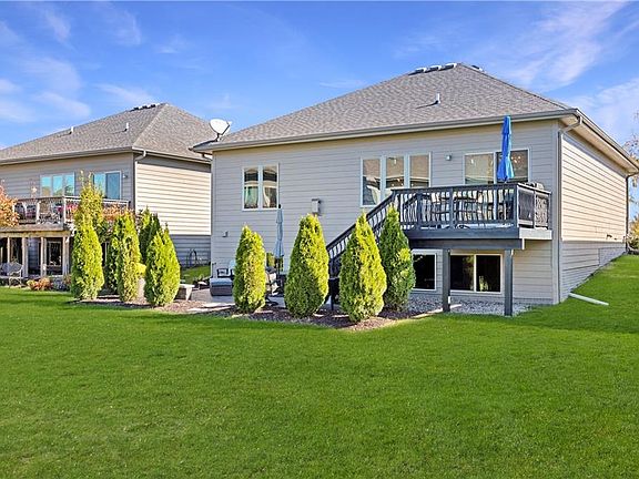 Incredible upgrades throughout this one owner villa townhome. Located in the convenient and highly desired South Maple Grove Villas, this ranch style home offers almost 2500 square feet of finished living area, 3 bedrooms, 3 bathrooms, and an awesome outdoor entertaining area. Features of the home include: Fresh professional paint throughout interior and exterior, hardwood flooring, new carpet, two gas fireplaces, all kitchen appliances included in sale, upgraded smart refrigerator with large display and gas range, granite countertops, corner walk-in pantry, custom window treatments, upgraded light fixtures, wet bar in lower level, large workout room with rubber flooring, mudroom off garage, and a large owner's suite with double vanity/tiled shower/linen closet, and custom designed closet. The layout and setting of this home sets up well for entertaining both inside and out given the large deck and paver patio with extensive landscaping. Easy to show and flexible possession available.