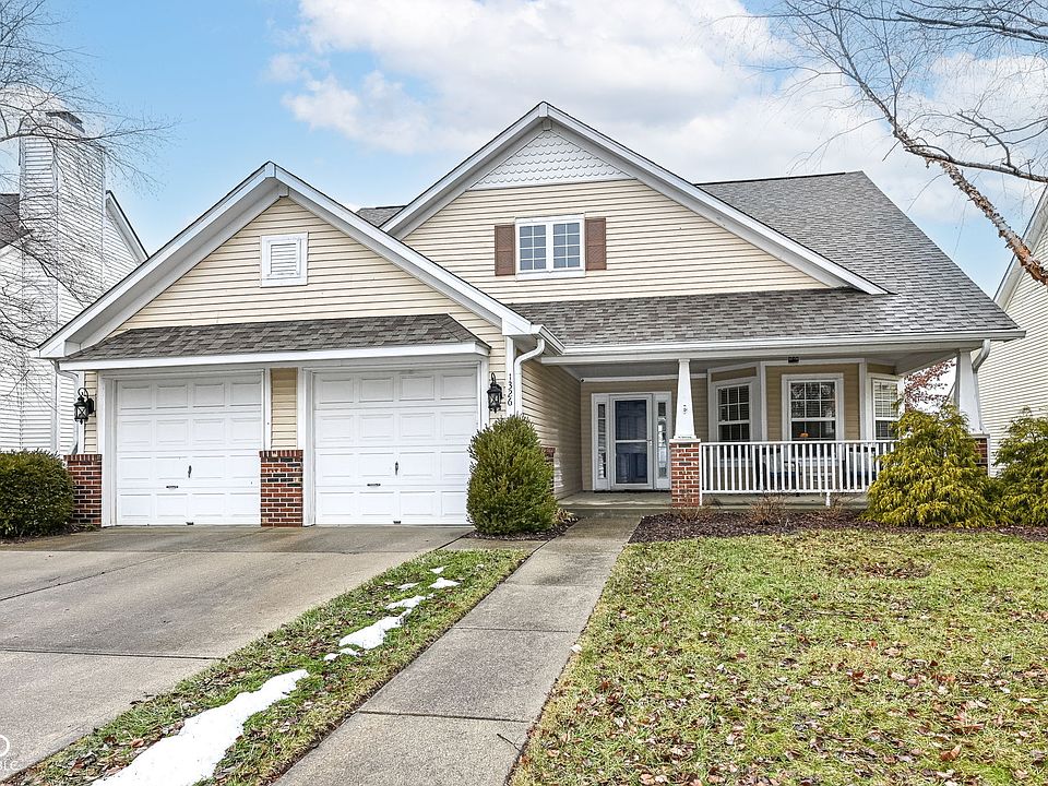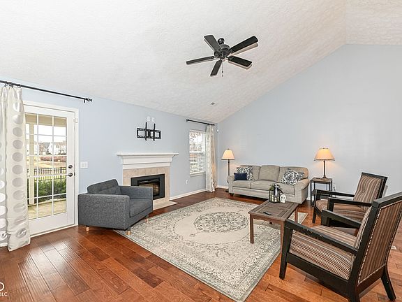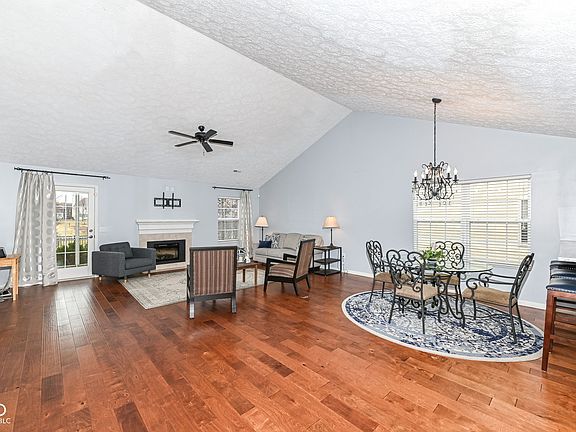 Open floor plan with vaulted ceilings in the great room. Kitchen is open to the dining room and great room. Stainless steel appliances, white cabinets and granite countertops in the kitchen. Split bedrooms. Both bathrooms have been updated. Screened porch and stamped concrete patio overlooking a pond and the common area for Centennial. Roof, furnace and heat pump, stamped concrete patio, fence, garage door opener 2017, water heater 2019, and refrigerator 2020
