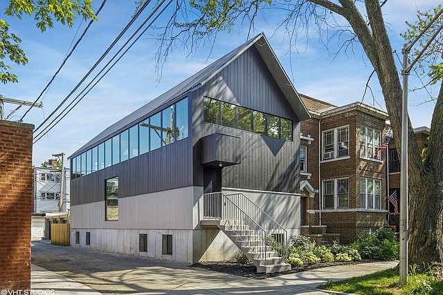 An incredible single family home from renowned architecture firm Kwong Von Glinow. Striking new construction that Crain's Chicago deemed "Decidedly unlike any house in Chicago". Enter into a two story interior courtyard that stretches the length of the home and is filled with natural light. Three bedrooms including the primary suite are located on the first floor off the curved interior courtyard. Upstairs, the home takes advantage of treetop sightlines and an alley setback to create a light-filled wide open living space with vaulted ceilings. Exposed trusses wrapped in french white oak match the hardwood floors, trim, and custom kitchen. The kitchen features Montclair Danby Marble countertops, Bertazzoni appliances, and custom cabinetry made locally by Dock 6 Collective. Home features 3 bedrooms and 3.5 bathrooms, with the ability to easily add a 4th bedroom in the basement if desired. All bedrooms are thoughtfully sized with large picture windows which provide nice views while maintaining privacy. Primary suite features custom California Closets, an attached bath with terrazzo tile, and has a beautiful view of the rear courtyard. Basement has polished concrete floors and features a lounge with a wet bar, office, full bathroom, laundry and abundant storage. Exterior is a beautiful blend of custom black and gray stained Accoya timber siding, a steel roof, and exposed concrete foundation. 3 car garage with one garage stall opening to the rear courtyard via french doors would make a great additional indoor/outdoor living space. Extreme attention to detail from Oslo Builders. Convenient Edgewater location steps to the Broadway Ave Whole Foods, bars & restaurants, and the Thorndale Red Line station. Just a 10 minute walk to the lakefront and Andersonville dining & shopping.