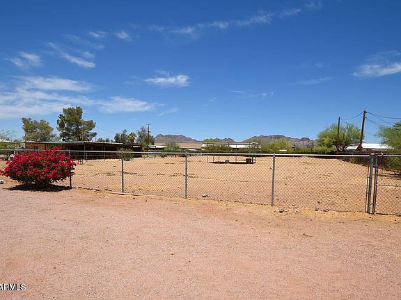 You can have it all. Within the city of apache Junction, 1.25 acre lot, home and with amazing horse set up. Includes large arena/turn out with a 4 horse fully enclosed stalls with tack room. The home is older but very well kept. Nice 2 bedrooms and 2 full baths. Open great room kitchen and dining. Perfect parking with a one car carport. Enjoy country life but not far from city perks. Ideal for winter visitor. Call for you private showing appointment.