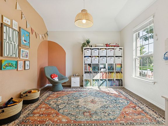 Outside, unwind in your private backyard oasis complete with a built-in fire pit. Enjoy a short walk to Caruth Lake, where you’ll find paved walking and jogging trails, a fenced in splash pad with bathrooms, a community pool and a playground perfect for the family.
