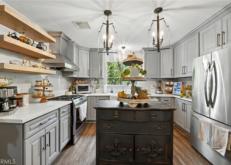 Situated on a generous corner lot in the heart of Moreno Valley, this unique four-bedroom, two-bath residence offers a tranquil, garden-like atmosphere unlike anything else. Surrounded by mature landscaping, fruit-bearing trees, and a variety of vibrant plants, the outdoor space feels like a private botanical retreat. Step inside to discover a beautifully updated kitchen featuring quartz countertops that balance elegance with everyday functionality. Italian ceramic flooring flows throughout the home, blending classic European charm with contemporary comfort. The converted garage serves as a private suite with its own bedroom, bathroom, and utility hookups, ideal for extended family, a home office, or rental potential. Just minutes from local shopping and amenities, this home offers a peaceful lifestyle with all the conveniences close by. It is more than a home. It is a hidden sanctuary.