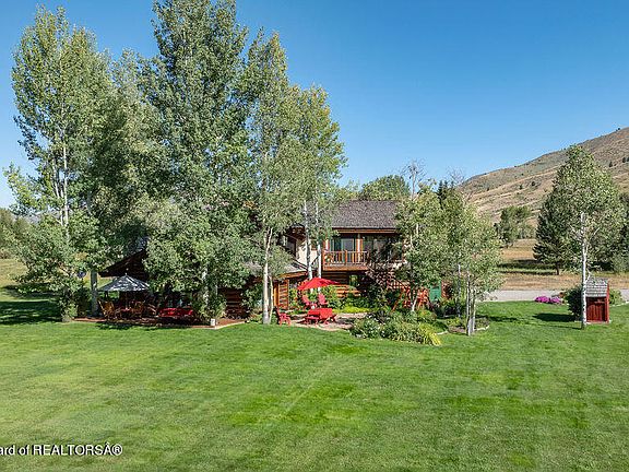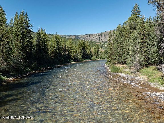 Discover this remarkable riverfront property, a true gem nestled on an oxbow of the Hoback River. This unique angler's paradise boasts nearly a mile of river frontage, with both sides of the river on the oxbow in front of the home providing an unparalleled riverside experience. The property is adjacent to the Bridger Teton National Forest for easy out the gate access to the Gros Ventre Wilderness and the many tributaries of Willow Creek. Spanning 65.9 acres the property has expansive meadows, a lovely pond, old growth evergreens along portions of the river and a lush lawn that gently slopes into the waters of the Hoback. The ranch is surrounded by breathtaking views of the towering rocky outcroppings of Cream Puff, Beaver Mountain, and the Poison Creek Drainage. (cont.) It lies at the mouth of the spectacular Hoback River Canyon which winds through the Bridger Teton National Forest, providing miles of fishing and trailheads. An easy 15-minute drive to the Jackson Hole Town Square, this property is part of the tiny and well-loved Bryan Flat neighborhood. While many of the properties here have conservation easements, this ranch is not encumbered by any conservation easement, homeowner's association nor covenants.