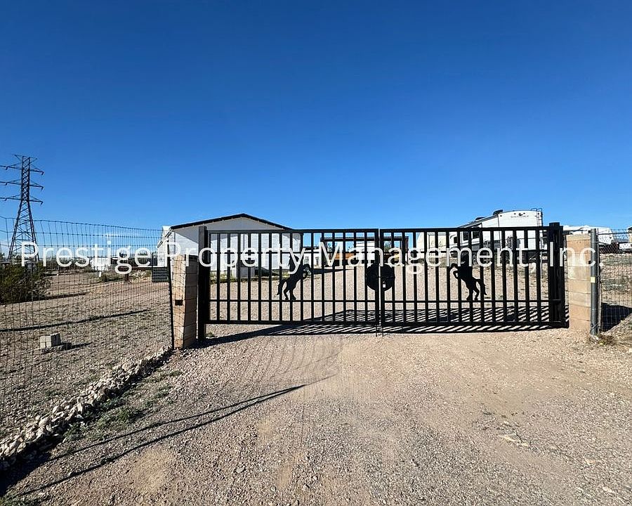 - Exterior features: 1 acre lot, 2 sheds that can be used as a tack room and barn, 7 covered parking spaces, all fenced, can park RV and off road vehicles, dining area, horse property, storage shed, tool shed/ work shop