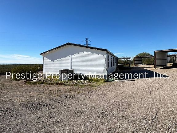Welcome to this 4-bedroom, 2-bathroom manufactured home in Vail, AZ, nestled on a sprawling 1-acre lot. This property is a haven for outdoor activities, offering ample space for RV and off-road vehicle parking. The lot is fully fenced, making it an ideal horse property. The home comes with two sheds, which can be conveniently used as a tack room and barn, and a separate tool shed that doubles as a workshop. With seven covered parking spaces, there's plenty of room for your vehicles. Inside, you'll find a comfortable living space complete with air conditioning and a dedicated dining area. This home is a perfect blend of indoor comfort and outdoor adventure. Experience the freedom of space and the convenience of modern living in this 4/2 Vail Home.