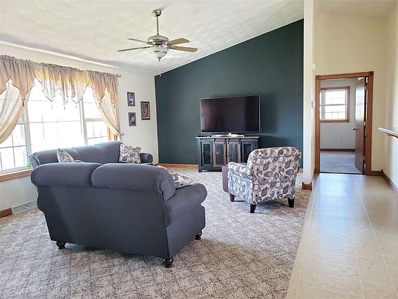 Country Living at it's finest...this 4 bdrm 3 bath ranch home has over 3000 square feet of living space. Built in 2004 home features master suite, main floor laundry, cathedral ceilings, open concept living that leads to a beautiful 16X20 composite deck off dining room! Lower level has just been completed with beautiful family room, walk out basement (rec area is plumbed for bar) with lower level concrete deck, 2 bedrooms, full bath, storm cellar and office! Lower level and 3 plus car garage feature in floor heat along with stairwell access! Wait there is more... there is a mound system, food plots, new seedlings and groomed trails on over 10 acres of land (6+ wooded) creating an excellent wildlife retreat!! This home is on a dead end road adding to the oasis of private country living!