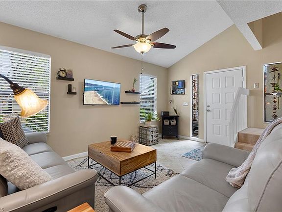 You can have it all! Paradise awaits right here in the heart of South Fort Myers. This townhouse offers 3 bedrooms, 2.5-Baths, and 1-Car Garage with a double-height private screen-enclosed courtyard. Inside this light-filled home boasts an open concept layout, tiles laid diagonally throughout the entire first floor, remodeled kitchen with new granite, wood cabinets, and stainless steel appliances. First-floor bedroom with courtyard access and full bath. Upstairs is laundry, a half-bath, and a guest bedroom. The owner's suite offers vaulted ceilings, a full ensuite bathroom with dual sinks, a tiled shower with a bathtub, and a private balcony overlooking the courtyard. This property is the perfect winter retreat, starter home, or investment. Drive through the canopy of oak trees, tropical landscaping, and mature foliage throughout the community. Cypress Lakes Estate also includes a recently renovated community pool, lakes, and walking paths. Proximity to US 41 and McGregor Blvd shopping and dining, Barbara B Mann, FSW campus, Bell Tower, Costco, Target, Fort Myers Beaches, Sanibel, Downtown Fort Myers, and Cape Coral! Sorry, CASH ONLY and NO RENTALS First Two Years of Ownership.