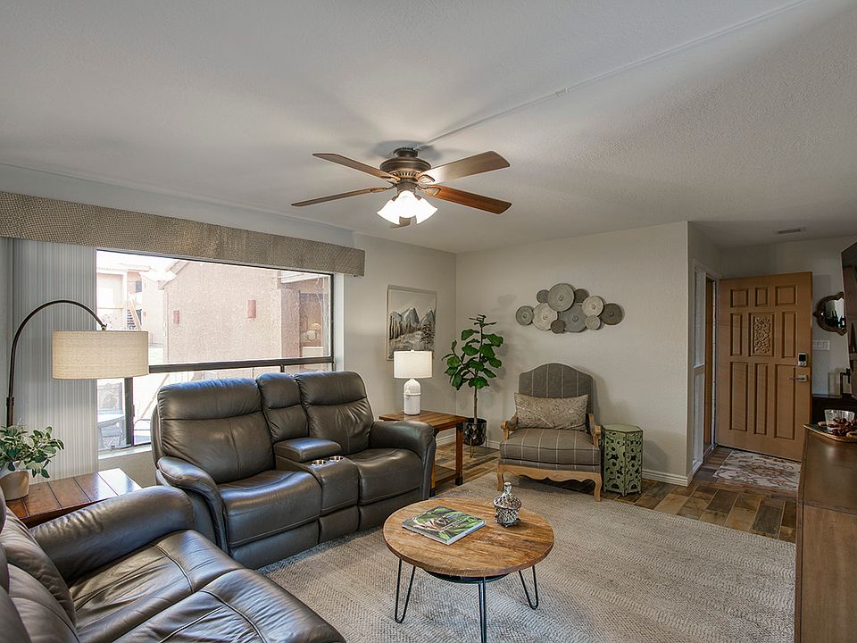 This beautifully updated ground floor unit offers effortless living with stylish features throughout. Fully furnished and move-in ready, it boasts two remodeled bathrooms, a spacious open-concept kitchen and dining area, and a convenient laundry room. Enjoy outdoor living with two private patios perfect for relaxing or entertaining.