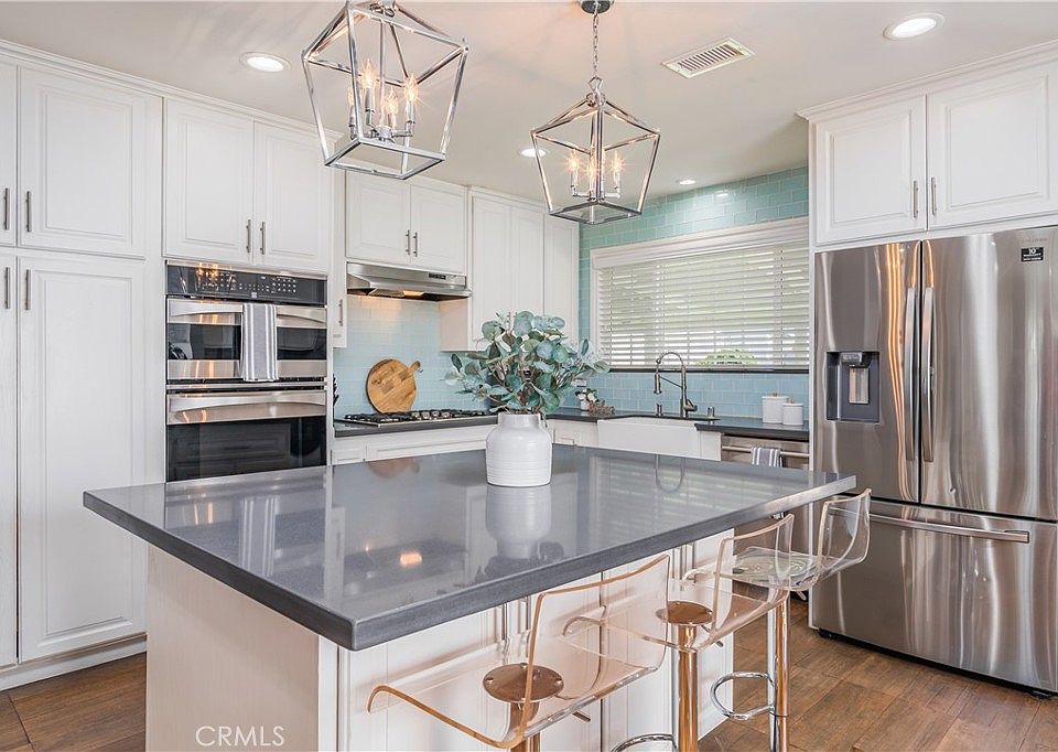 Situated on nearly a 10,000 sq ft lot is 13265 Helmer Drive! This cozy single-story Whittier home features 3 bedrooms, 1 bathroom and 1,116 sq ft of living space. From the moment you pull into the long driveway, you are immediately greeted by a well-manicured front lawn and white home with black trim exterior. Step through the custom front door and into a naturally bright and open floor plan with original hardwood floors throughout, smooth ceilings and recessed lighting. The remodeled kitchen features quartz counters, an island, decorative light fixtures, subway tile backsplash, white cabinetry, a farmhouse sink and stainless-steel appliances. All 3 bedrooms are comfortably sized. The outdoor space with a partially covered patio and a large grassy area offers the perfect park-like setting backyard that is great for year-round family fun and entertainment! Additional features include a remodeled bathroom, dual pane windows, inside laundry, new central AC+Heating, and a 2-car detached garage with separate bonus room, currently being used as a home office with expansion potential. This home is in close proximity to schools, shopping, dining, & public transportation. The ideal combination of a convenient location and updated move-in-ready home. A MUST-SEE!