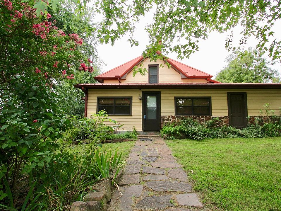 Amazing country home on 2.25 acres with 3 wells and city water. Front porch views for miles, great metal roof, electric and plumbing all updated, downstairs bed and bath and two large upstairs rooms with bath. Iron stove in living room. Great kitchen with huge pantry, and root cellar. Huge screened in back porch. Two heated and cooled outbuildings. 1200 sq ft (2006) with 3/4 bath could be easily turned into a second home, and 280 sq ft (1991). Only 15 minutes to Fayetteville.