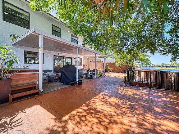 Discover the charm of lakeside living in this exquisite 3-bedroom, 2.5-bathroom home, perfectly designed for comfort and style. Equipped with impact windows, the interior is bathed in natural light, showcasing an open floor plan that effortlessly blends the living, dining areas with an additional family room—ideal for entertaining and family life. Upstairs, the master suite offers a serene retreat with a private bath and walk-in closet, while two additional bedrooms provide versatile space for a home office or guests. The highlight is the backyard patio, offering stunning lake views and spectacular sunsets, promising a tranquil backdrop for relaxation and gatherings. Home comes wired for electric vehicle charging. Front parking area and patio is being repainted into a cement gray color.