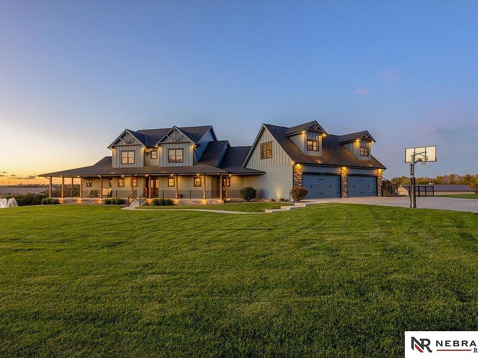 Luxury Estate on 5 Irrigated Acres! Discover unparalleled living in this masterpiece w/ a private apartment. The main level offers a primary suite w/ linear fireplace, vaulted beam ceiling, dual-head walk-in shower, & spiral staircase to loft. The gourmet kitchen is a dream w/ granite counters, pot-filler, double ovens, professional fridge, & large island. Entertain in the open great room w/ pool-view balcony overlooking the resort-like indoor pool w/ slide & fountains. The home includes 4 linear electric fireplaces and 3 kitchens w/ granite. The lower level is an entertainment haven: a CEDIA® Certified Movie Theatre with 7.2.6 Dolby Atmos, a full brick saferoom/vault, an exercise room, and a vast rec room. Step outside to a private covered patio with a six-person hot tub and a built-in propane firepit. The expansive grounds offer a lighted sand volleyball court, a walking path in your own private forest, and a stocked swimming pond with a sand beach and dock. Agent related to seller.