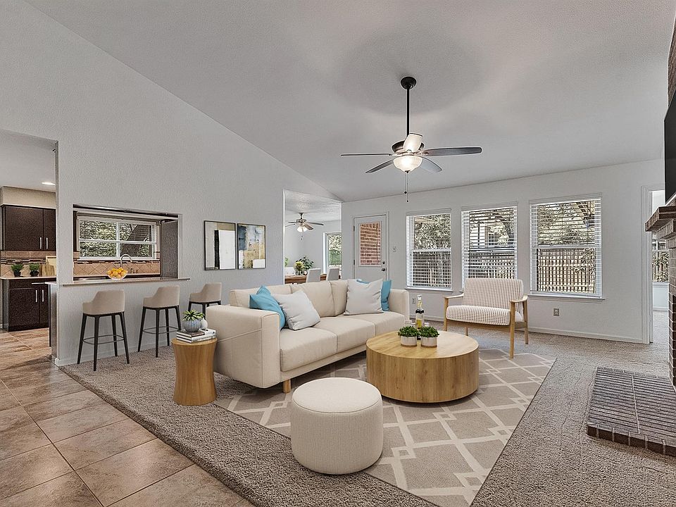 A must see in the heart of North Austin, this beautifully updated single-story home offers comfort, style, and unmatched convenience. Ideally situated within walking distance to Apple’s HQ and Jollyville Elementary, this 4-bedroom, 2-bathroom residence spans 2,028 sq ft and blends modern updates with timeless charm. Natural light pours into the spacious living room through updated windows overlooking the lush backyard. A brick gas fireplace anchors the space, creating a warm and inviting atmosphere for everyday living or entertaining. The living room flows effortlessly into two dining areas, including a formal dining room that has been thoughtfully renovated—perfect for hosting, working remotely, or creative pursuits. The remodeled kitchen boasts custom cabinetry and built-ins designed for maximum efficiency and storage. Recent upgrades in the last few years include a new roof, windows, HVAC system, gutters, and kitchen, making this home move-in ready. The primary suite is a true retreat with a walk-in closet and an expansive en-suite bath featuring a soaking tub and separate shower. Step outside to your backyard oasis with new composite decking, fig and loquat trees, and native landscaping. A fully installed in-ground sprinkler system covers both front and back yards, and a 110-gallon rainwater collection system adds sustainable ease to your gardening routine. Located on a tranquil, tree-lined street just six homes away from the entrance to a scenic walking trail that provides access to the community pool, community center, basketball courts, tennis courts, pickleball courts and a park. Residents may also opt into the Rattan Creek Neighborhood Association. Membership is just $25/year with no transfer fee, and is open to both residents and non-residents. Experience the perfect blend of natural beauty, modern updates, and prime location in one of Austin’s most desirable and growing corridors.