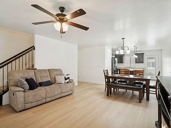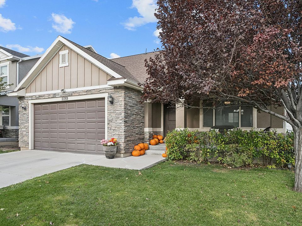 Brand new Carpet, Paint, LVP flooring. WOW! What a Find! Light, bright, and spacious, this beautifully maintained 4-bedroom, 3-bath rambler offers comfort and style in the heart of Herriman Town Center. The open-concept living area flows into a well-appointed kitchen with rich wood cabinetry. Large and spacious main-level primary suite with a large walk-in closet. Upstairs-an ideal space for kids or guests with 2 bedrooms and a full bathroom. Situated on a large corner lot with full landscaping and a fully fenced backyard, this home is perfect for entertaining. Enjoy the hot tub-ready pad, low-maintenance yard, and the new furnace and A/C. A reverse osmosis system and water softener are included. So much to offer-don't wait, come and see!