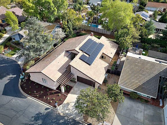 Welcome to this much-loved, newly remodeled, single level home on a double cul de sac in the sought after Vineland Hills neighborhood. The double cul de sac creates a safe place to play, and the home is less than a minute’s walk to the HOA recreational complex with a pool (currently being fully remodeled for summer), tire swing play area, pickle ball, tennis, and basketball courts. The home has recently been remodeled with new flooring, a new kitchen and bathrooms, new paint throughout, and updated exterior and landscaping. The 7kW owned solar system provides almost free electricity for the year and the garage has been wired with a junction box allowing for easy installation of an EV charger. The garage also has an abundance of storage space with rafter shelving, and there is additional storage space in the attic space easily accessible with a pull down ladder. The location is perfect for walking to nearby highly acclaimed Chaparral Elementary School, and daily bus service to and from Twin Peaks Middle School makes the parental shuttle service a lot less demanding. Vineland Hills is known for its well maintained walking paths through the neighborhood that are great for evening strolls or walking the dogs. For longer hikes, the paths connect to the numerous Poway horse/hiking trails on which you can spend the day walking through neighborhood areas and all the way to Blue Sky Reserve and Lake Poway