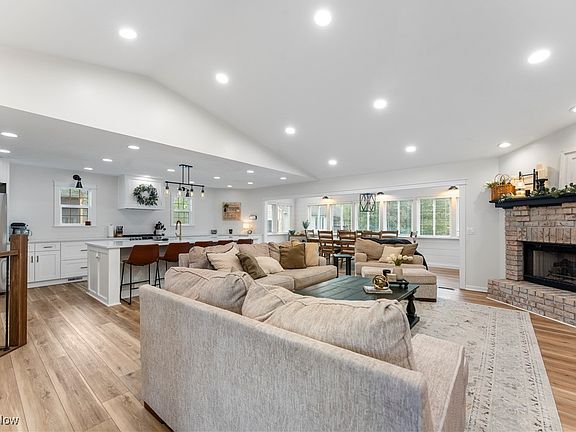 Welcome to this beautifully remodeled ranch home that perfectly blends modern luxury with functional living. Featuring 3 spacious bedrooms, 3 full bathrooms, and a partially finished full walkout basement, this home offers everything you’ve been looking for—and more. Step inside to discover a completely reimagined interior boasting luxury vinyl tile (LVT) flooring throughout, new recessed lighting, and an open-concept layout ideal for both everyday living and entertaining. The gorgeous new kitchen is a true showstopper, complete with high-quality cabinetry, brand new appliances, stunning countertops, eat-in island, new kitchen windows, modern light fixtures, and a newly added butcher pantry. The seamless flow into the dining and living room areas, complete with a beautiful hearth, creates an inviting space for gatherings. Retreat to the luxurious master suite, where you'll find a spa-like on-suite bathroom featuring a double vanity, custom tile shower with dual rain heads, and ample storage for daily convenience. The walk-in closet and built-in makeup vanity make this suite as practical as it is elegant. Both main floor bathrooms have been thoughtfully updated with modern vanities, countertops, lighting, toilets, and showers, ensuring comfort and style throughout. The remodeled staircase and railing to the basement add a touch of architectural charm, while the walkout lower level offers even more potential for living or entertaining space. Additional upgrades include:freshly painted siding, soffits, gutters, and soffits as well as a new roof (December 2023). This home is truly move-in ready, blending timeless craftsmanship with the latest in modern updates. Don’t miss your chance to own this exceptional property!