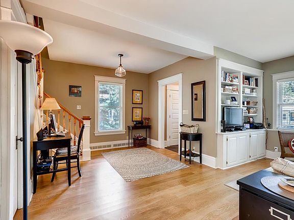 Own a piece of Hudson History! This lovingly cared for 1911 home built by John Lee with a distinctive Gambrel Roof boasts newer white oak flooring throughout the main level, updated kitchen, bathrooms and bedrooms. Newer furnace and Air Conditioning. Rare two car detached Carriage House style garage with an additional 600 square feet of living space with vaulted ceilings, pine floors, running water and a wood burning stove. Minutes to Highway 94 and walking distance to historic downtown Hudson.