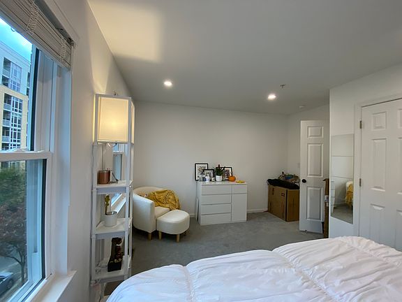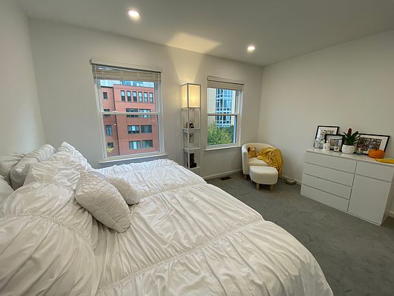 The home has a very large, updated kitchen with access to the backyard, recess lighting throughout, all brand-new windows, blinds, carpet and high-speed wireless Internet/cable access. The house also has dedicated parking spots in the back (additional fees apply). No room sharing, no pets, and no smoking inside the house. Flexible to do in-person or virtual shows. This is a fun group house with young professionals. Available room is a bedroom with two large sunny windows on the top floor overlooking the tree-lined street. Has 2 large closets and can easily fit a queen-size bed.
