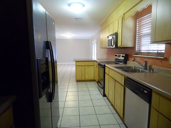3BR/2BA spacious home with a huge privacy fenced backyard! Large den/dining room is open to kitchen allowing for easy entertaining. Home is tiled throughout and kitchen has been updated with black & stainless appliances and solid surface countertops. Features a large laundry room, 2-car garage w/extra outlets for power tools and a separate storage/workshop!