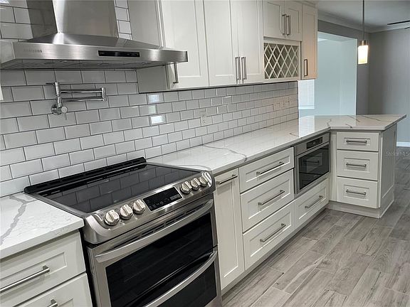 HOLIDAY special this month in HOLIDAY! This home has been Completely REMODELED inside that has Everything is BRAND NEW. Owner spared no expenses; Quartz counter tops, soft close cabinets, all high end kitchen appliances, fixtures and brand new washer & dryer, High end AC unit. Home is on septic. Garage is not available for use and is unavailable but owner has closed circuit security cameras for outside exterior only. Looking for tenant who will appreciate the gorgeous interior. Exterior lawn maintenance is included. Sorry no pets. Home is ready and in move in condition.