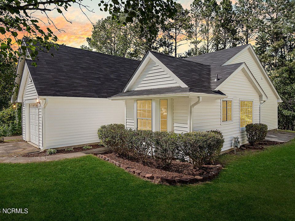 2 BR 2 Bath attached home offers a large living space with cathedral ceilings and a convenient one car garage. The seller has just installed a new roof and new siding. The kitchen has been upgraded with a new dishwasher, stove and large microwave. New double sinks and a beautiful white stone counter top make the kitchen shine. Large bay windows in both the kitchen and living room provide plenty of light. Two full baths sparkle, with new tile and fixtures. Washer and dryer convey. This one will not last.