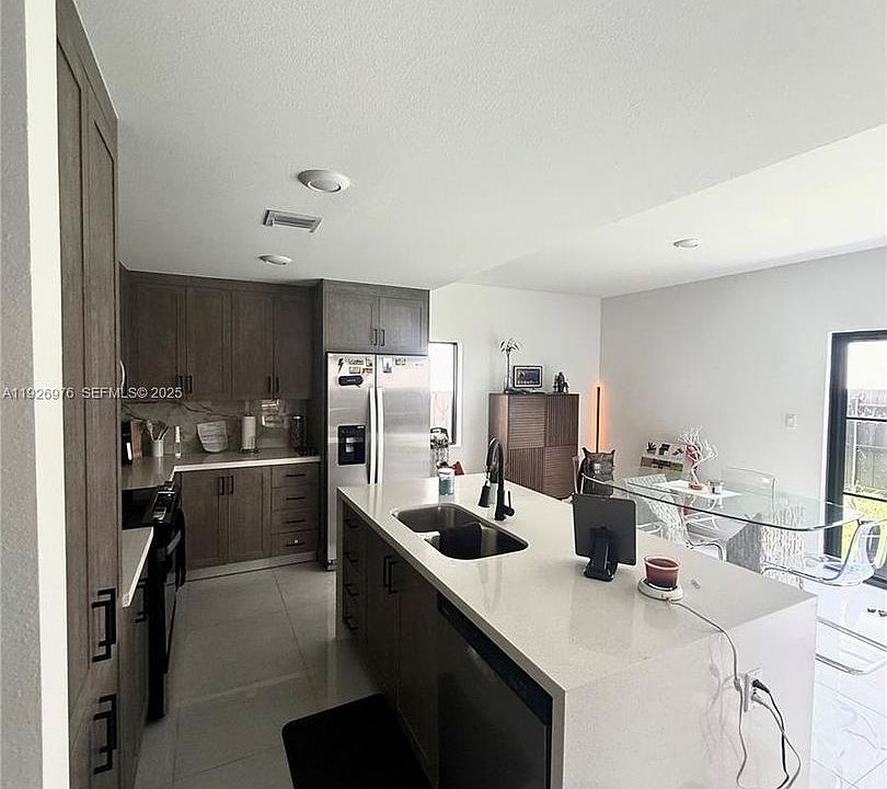 Experience the most spacious and modern model in the community, featuring an open-concept layout with a gourmet quartz kitchen, oversized island, and expansive living and dining areas filled with natural light. The modern design and high-end finishes create the perfect blend of style and functionality.Enjoy the privacy and flexibility of a first-floor bedroom with full bathroom and independent entrance -- ideal for guests, in-laws, or officeUpstairs, you'll find large bedrooms and modern bathrooms with elegant finishes. Ceramic flooring throughout, impact windows, and stainless steel appliances nearly new. Balcony, washer and dryer.