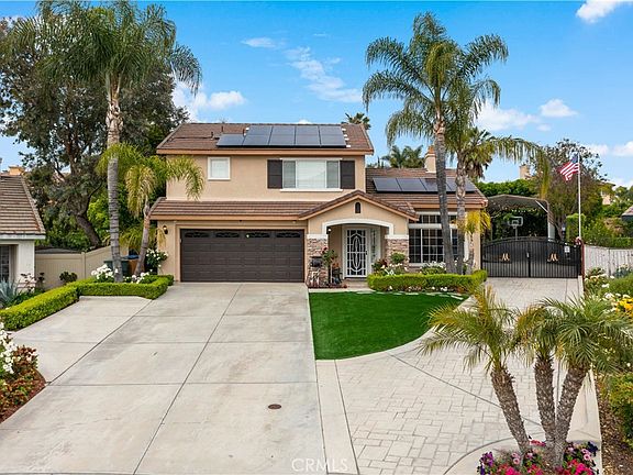 Don’t miss out on this incredible opportunity to own this extensively upgraded SOLAR and TURNKEY home in Sycamore Highlands,located at the end of a cul-de-sac! If you are looking for a great mix of family friendly as well as low maintenance living,look no further. As you approach the residence,enjoy the meticulous landscaping and curb appeal as well as the tasteful neutral exterior paint scheme and extended driveway with extra parking and RV access. This property features 3 spacious bedrooms,plus an additional den/office (potential 4th bedroom) and 2.5 bathrooms. Upon entry,enjoy the neutral interior paint scheme throughout,gorgeous wood-look tile flooring,updated baseboards,recessed lighting,custom shutters,crown molding in select areas and more. Downstairs, the den/office is beautifully customized with gorgeous built-in components with multiple usage capabilities. The family room is open to the kitchen and features a warm and inviting fireplace and Panoramic sliding doors that accentuate the indoor/outdoor living options. The kitchen features plenty of cabinet and counter space,peninsula with bar seating ability,custom pantry area,dishwasher,vent hood,the list goes on. Just off the kitchen is the laundry room which also features custom cabinetry and extra storage. The amazing master bedroom features custom built in conveniences as well as an absolutely gorgeous renovated en-suite master bathroom and walk in closet. The remaining bedrooms are generously sized as well and enjoy the remaining updated bathrooms as an added bonus. The garage is also tastefully updated with custom cabinetry and storage as well as epoxy flooring. The back yard is an entertainer’s dream! The incredible amenities include the mature landscaping with artificial turf, deep root watering system with root barriers and meticulous design, custom patio cover with electric heaters, stamped concrete with lighting, RV concrete driveway with 6-8-inch-deep double rebar stamped cement, electrical features,50-foot custom RV carport, fruit trees and irrigation, vinyl fencing, custom dog house, outdoor playset area, shed, TOO MUCH TO LIST!! Other notable features include the outdoor camera system,Tesla charging stations,custom electric gate,ceiling fans,additional custom closet built in’s and peek-a-boo mountain views. Conveniently located near parks, schools, freeways, shopping and entertainment. See included Supplements for additional details and upgrades list. Act now,before it’s too late!