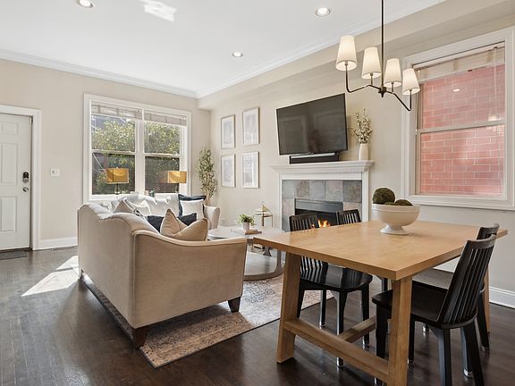 The best of both worlds! Enjoy the charm and privacy of a single-family home with the convenience and value of a condo - all on a tree-lined street in the heart of Lakeview, just steps from the vibrant Southport Corridor. This rare and pristine triplex offers 3 bedrooms, 2.5 baths, and the luxury of two spacious living rooms. Enter through your own private back entrance, where the main level greets you with abundant natural light and an open-concept white kitchen. Fresh quartz countertops, classic subway tile backsplash, stainless steel appliances (new fridge and dishwasher) and a farmhouse sink create a timeless yet modern space. A gas fireplace anchors the living area, while a powder room and dedicated dining space complete this inviting level. The second floor continues the townhouse feel with two bedrooms and a fully renovated bath, blending comfort with style. Downstairs, the expansive lower level is designed for relaxation and entertainment - large enough for an oversized sectional, centered around a second gas fireplace with a striking stone surround and custom built-ins. This level also includes a third bedroom, another fully renovated chic full bath, and side-by-side laundry. Step outside to your private patio, surrounded by greenery, and enjoy a newly refreshed backyard with a shared fire pit - rarely used by neighbors and offering near-private enjoyment. A designated parking spot is included. Recent upgrades add peace of mind, including a new roof (2023) and nearly all windows replaced (2020). With Southport's best dining, boutique shopping, fitness studios, yoga, and coffee shops right outside your door - plus the Brown Line just steps away for a seamless downtown commute - this home delivers both lifestyle and convenience. Located in the sought-after Hamilton Elementary district. Pet-friendly, investor-friendly, low assessments, well-managed, and all owner-occupied. This is city living at its very best.