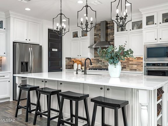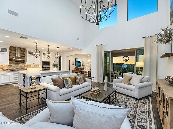 Discover this highly upgraded Pulte Messina model in the coveted Rocking K community, located in the award-winning Vail School District. This spacious home offers 6 bedrooms, 4.5 baths, a loft, a den, and a 3-car tandem garage, with a rare 2-foot floorplan extension for added space. The chef's kitchen features KitchenAid(r) appliances, quartz countertops, beautiful pendants, an expansive granite sink, Oakcraft(r) cabinetry with soft-close drawers, and built-in pullouts. Retreat to the primary suite, where a spa-like bathroom showcases Oakcraft cabinetry, a walk-in shower with dual rain showerheads, subway tile surrounds, and a sleek glass partition. All secondary bathrooms and the laundry room feature matching cabinetry, upgraded glass showers, and premium finishes. The backyard is a true showstopper, including a luxury heated pool built in February 2025, complete with travertine tile decking, a dedicated sun deck, an integrated natural gas fire pit, an automatic water leveler, a built-in cleaning system, and salt-cell water purification. A fully transferable 15-year warranty on the decking and pool construction ensures peace of mind. Additional upgrades include whole-home surround sound, upgraded tile flooring, hard-wired security, a radiant heat barrier for the roof, and moreplease refer to the Documents tab for the full upgrade list. Enjoy Rocking K's 20-acre park, athletic courts, playgrounds, splash pad, and miles of scenic trailsall in a serene desert setting with mountain views.
