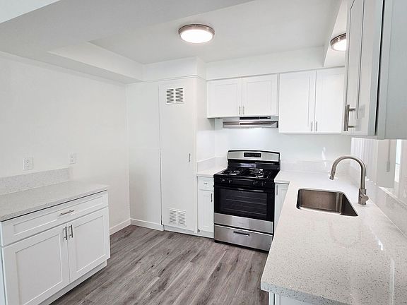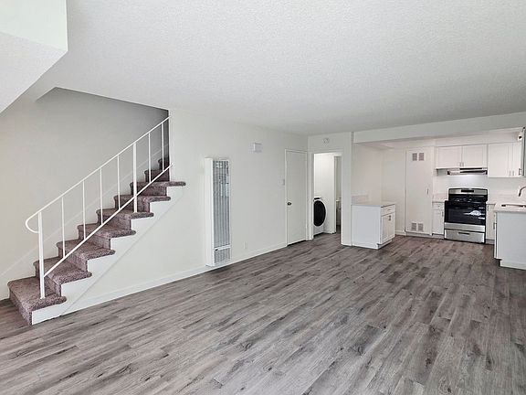 Welcome to this gorgeous two-story, 2-bedroom, 1.5-bath townhome located in the Garden Grove, just minutes from the Angel Stadium, Disneyland, and more! This beautifully renovated home boasts a modern design with bright white paint throughout, complemented by brand-new flooring. The kitchen features sleek shaker cabinets, light gray quartz countertops, and a gas oven rangeperfect for culinary enthusiasts.