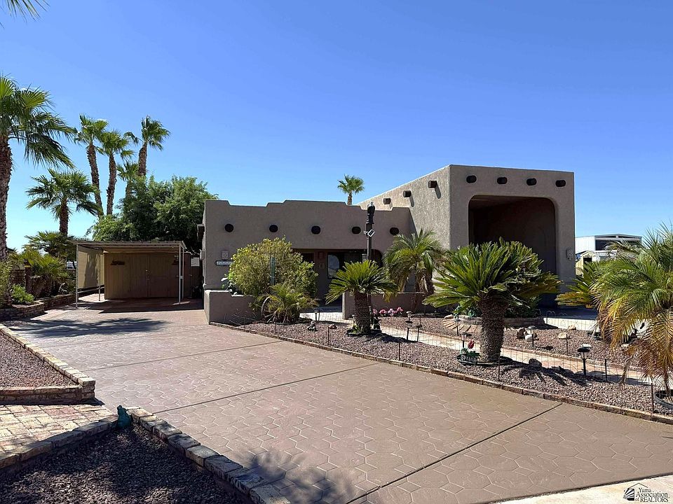 Welcome to this well-equipped corner lot property, designed with comfort and functionality in mind! This 2-bedroom home offers RV access with two RV hookups plus a spacious RV port and hydraulic double gates, perfect for your toys and travel needs. You’ll love the convenience of a covered car carport, a second driveway, and both single and double gates for easy access. The property features a 12x14 shop and a 10x12 shed with power, giving you plenty of workspace and storage options. Inside, enjoy thoughtful touches like a utility room, laundry room, pantry, and upstairs walkable storage space. A newer water heater, water softener. Outdoors, relax under the covered patio surrounded by mature plants and palms, making it the perfect spot to unwind. This home is ready to meet all your lifestyle needs!
