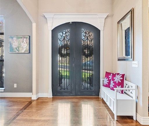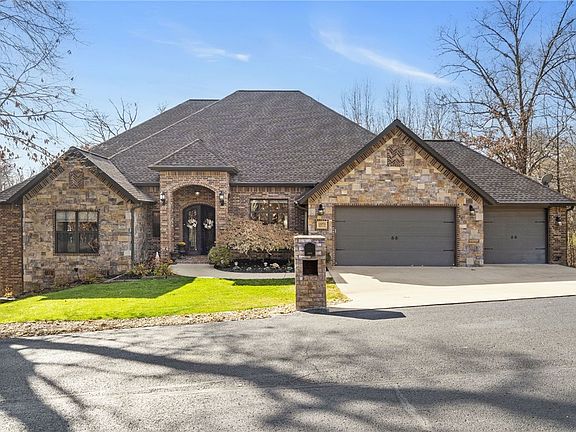 Welcome to this beautiful custom home on 1 acre oasis. Located only minutes from the 49 Bypass, one can quickly access all the conveniences of both Bentonville and Bella Vista as well as easily navigating to any of the area headquarters for work. When entering the foyer thru gorgeous iron doors, you are welcomed by a thru-view of soaring ceilings, spacious living and your spectacular wooded backdrop. The main floor boasts an open concept offering a large living room, a well-appointed kitchen with either a breakfast area or sitting area with fireplace and 3 bedrooms. When venturing downstairs, you enter another over-sized living area with wet bar from which you can explore the adjacent gameroom, exercise room, bonus room and guest suite. In addition to these spaces, there is also an oversized storage room. To enjoy your scenic views, there is a balcony off the main living area as well as 2 decks accessible from the downstairs living room, one of which offers an hot tub. Come see this gem for yourself!