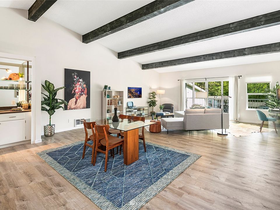 Truly stunning two bedroom condo with vaulted ceilings and south facing windows. Step out onto your private deck and sip from your morning mug as you take in the park like grounds with green spaces all around. The enormous open concept layout allows for a proper dining room, a wet bar (for your own rat pack), and a king-sized primary bedroom with double closets and updated en-suite bath. Plenty of storage throughout with a pantry and separate laundry room with full-size W/D. Quick stroll to the heated outdoor pool, Jacuzzi, men's & women's sauna, and cabana. Ideally located next to Jackson Park Golf Course, bus lines, shops & restaurants. Minutes to the future light rail station + easy commute downtown!