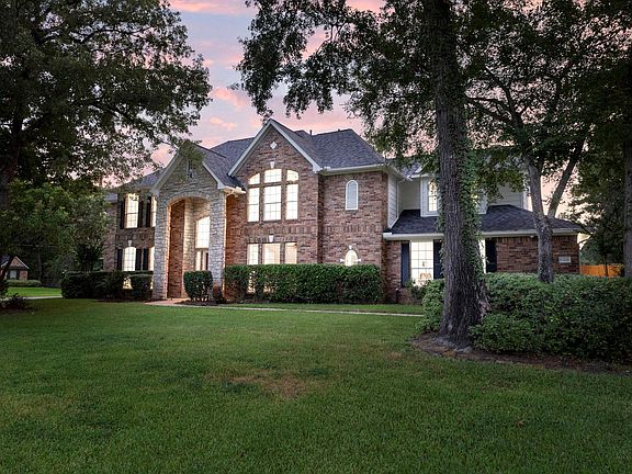 Stunning 5-bed, 4.5-bath home on a 3/4 acre corner lot in desirable Crighton Woods! This home offers a light-filled open floor plan with crown molding, decorative arches, built-ins galore, fresh paint, wood-like tile in living areas and new carpet in the bedrooms. Downstairs features a private study, formal dining and a spacious family room with a corner fireplace, opening to an island kitchen with granite, stainless steel appliances and a breakfast nook with access to 2nd stairway. Luxurious primary suite features high ceilings, a sitting area with a fireplace, and a remodeled spa-like bath with quartz counters and new white cabinetry. Upstairs features a study nook, a game room, four large bedrooms, and three updated bathrooms. Fall in love with the serene backyard oasis featuring a covered patio, expansive deck, sparkling pool/spa, green space and mature trees. New roof in 2021! Convenient to I-45 and close proximity to The Woodlands’ shopping, dining, and entertainment.