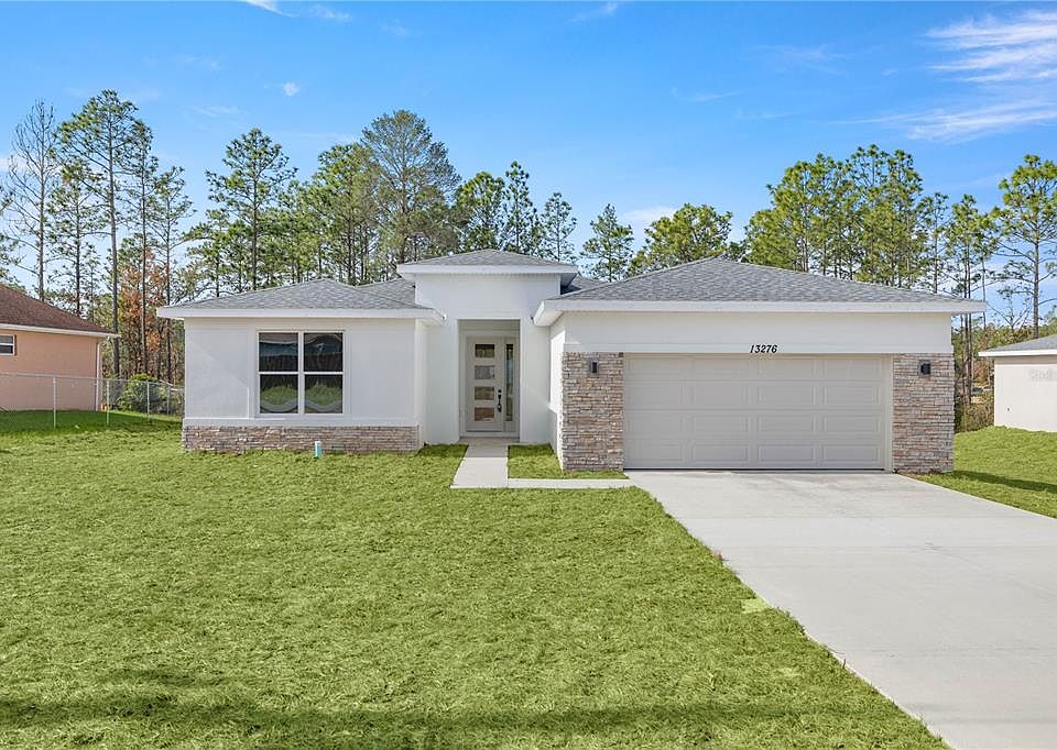 Step into the sensible sophistication of your new Estela Living home, where every detail has been meticulously crafted to exude up-to-date refinement yet tasteful subtlety. As you arrive, a majestic stone facade warmly welcomes you. Your eyes are immediately drawn to the front door, adorned with sleek glass framing, a testament to the contemporary but conservative poise throughout the property. Walking through the front door, the open floor plan instantly gives a sense of spaciousness and comfort. The finishings leave an impression of functionality and style. An oversized sliding glass door and numerous windows bring in tons of natural light. The generous family room has been thoughtfully worked into a seamless design encouraging togetherness while allowing for individual pursuits. A covered lanai, coffee station, designer pendant lights and hard floors throughout are other features included in our homes. Unlike the standard offerings found in homes below luxury pricing, these upscale details are currently found only in Estella Homes, where affordability is being redefined. Estella Homes is setting a new pace for economical family homes by opting for methodically chosen luxury design elements as focal points with dignified surroundings.